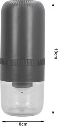 Den gennemsigtige beholder på 150 ml giver fuld kontrol over resultatet, mens betjening med én knap sikrer intuitiv brug. Takket være de kompakte mål passer kværnen i ethvert køkken og er perfekt på farten – tilslut blot en bærbar computer, powerbank eller oplader.