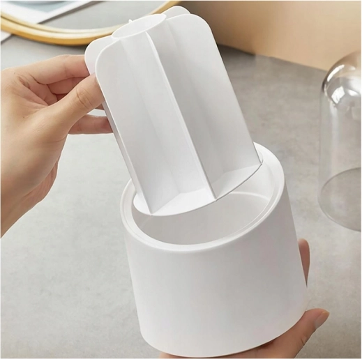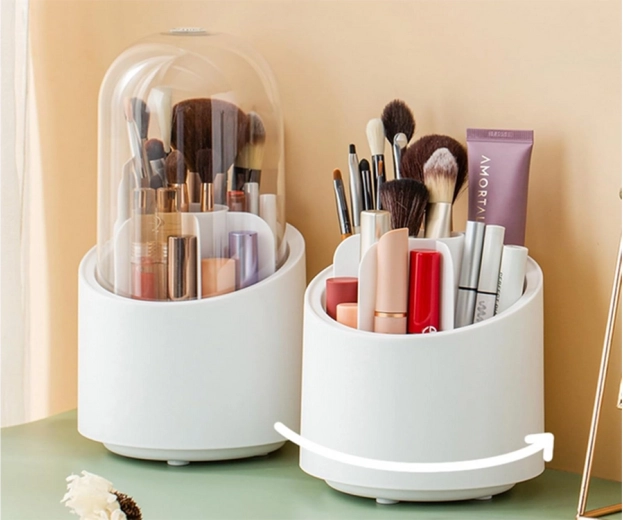 Den praktiske roterende kosmetikorganizer kombinerer elegant look og maksimal funktionalitet. Takket være det gennemsigtige låg forbliver din kosmetik beskyttet mod støv og fugt, mens den 360° roterende base giver hurtig adgang til alle produkter med én bevægelse.