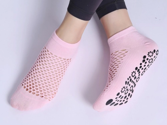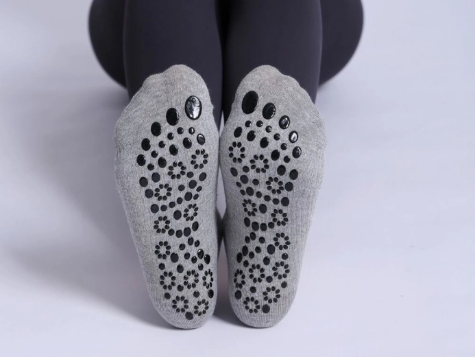 Disse funktionelle strømper kombinerer komforten fra 100% bomuld med sikkerheden fra en skridsikker sål. De er lette og luftige, så du føler dig godt tilpas i enhver bevægelse. Velegnede til hjemmetræning, studie og daglig brug.
