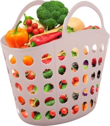 Den alsidige kurv med runde huller sikrer luftcirkulation, hvilket gør den velegnet til frugt, grøntsager og svampeplukning. Den lette, men robuste konstruktion i kvalitetsplast klarer daglig brug i hjemmet, i haven og på farten.