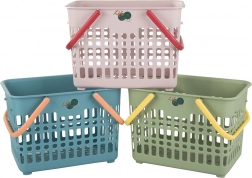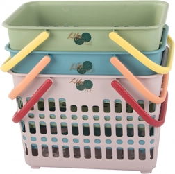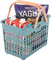 Praktisk kurv med solid konstruktion og sammenklappelige håndtag, perfekt til små indkøb, transport af madvarer, udflugter og opbevaring af småting i hjemmet. Den åbne gitterstruktur sikrer luftcirkulation og hurtigt overblik over indholdet, mens den robuste plast garanterer lang levetid.