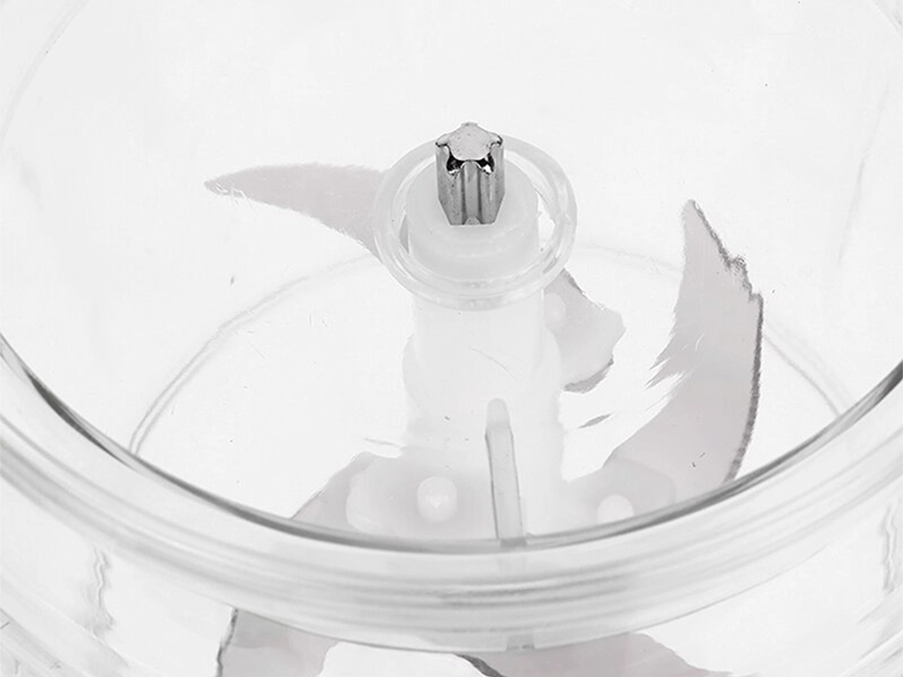 Fire skarpe knive af rustfrit stål sørger for jævne resultater, og den stabile base sikrer sikker brug. Betjeningen er ekstremt enkel – tilslut blot strøm og tryk på den øverste knap. Forlæng apparatets levetid ved ikke at bruge det kontinuerligt i mere end 30 sekunder.