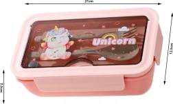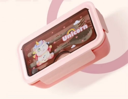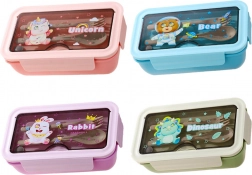 Boksen er fremstillet af holdbar plast og har en samlet kapacitet på 1 l, ideel til morgenmad, frokost og snacks. De kompakte mål passer i skoletaske eller arbejdstaske. Fås i flere farver: pink, blå, lilla, grøn.