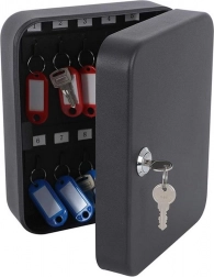 Dette holdbare metalskab til nøgler sikrer sikker opbevaring og perfekt organisering af alle vigtige nøgler. Takket være den kvalitetsmæssige lås og den solide stålkonstruktion er nøglerne beskyttet mod uautoriseret adgang og skader. Praktiske kroge og skrivbare skilte gør det muligt straks at genkende det rigtige nøglebundt.