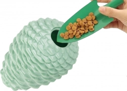 Keglen med praktisk åbning kan fyldes med foderpiller eller godbidder. Hunden får sin belønning gennem aktiv leg, som styrker naturlige instinkter og forlænger fodringstiden.
