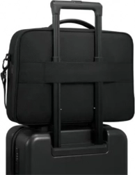 Elegant og robust taske til dagligt arbejde og rejser, designet til 14″ bærbare. Den tilbyder vandafvisende materialer og lynlåse, polstret rum, RFID-lomme til kortsikkerhed, gennemtænkt organisering af tilbehør samt rem til kuffert. Ydersiden er lavet af 88 % genanvendt PET – praktisk, stilfuld og bæredygtig i ét.