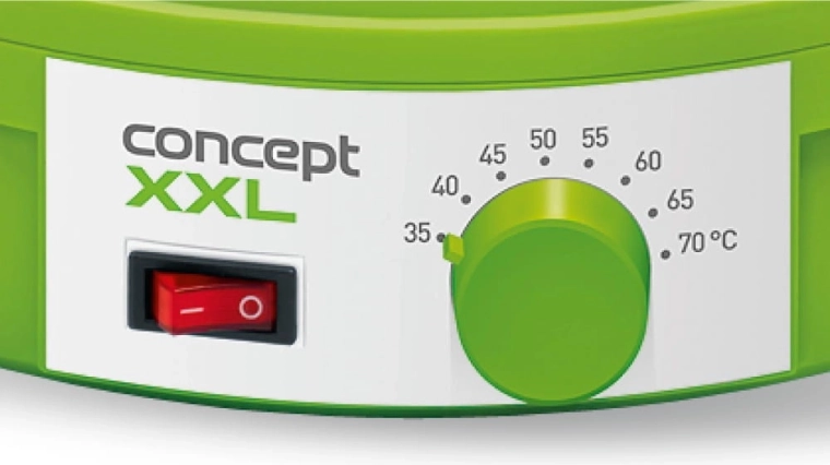 Concept madtørrer tilbyder en fremragende løsning til at forlænge holdbarheden på fødevarer uden at miste deres næringsværdi. XXL-størrelse med 12 bakker gør det muligt at forberede store lagre af tørrede grøntsager og frugter til vinteren. Resultatet bliver velsmagende supper eller sunde kompotter, som vil glæde hele familien. Praktisk vedligeholdelse – tørreenheden er designet for at gøre rengøringen så nem som muligt, og bakkerne kan vaskes i opvaskemaskinen. Jævn tørring sikres af en integreret ventilator med specialformede ventilationsåbninger, som garanterer fremragende resultater på hvert niveau af tørreenheden.