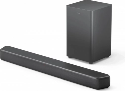 Den kompakte trådløse subwoofer tilføjer markante og præcise basser til soundbarens krystalklare lyd. Brug 4 EQ-tilstande og dialogforstærkning for perfekt taleklarhed.