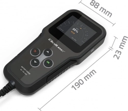 Qoltec batteritester er en praktisk hjælper til hurtig kontrol af tilstanden på både start- og stationære batterier. Den understøtter et bredt spektrum af teknologier: AGM, GEL, SLA, EFB, WET og DRY (bly). Med måling af SOC (State of Charge) og SOH (State of Health) kan du nemt bestemme den aktuelle ladetilstand og batteriets generelle sundhed og i tide opdage fald i ydeevnen.