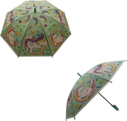 Den søde børneparaply med enhjørningemotiv beskytter dine børn mod regn og glæder med et legende design. Takket være den automatiske mekanisme åbner den hurtigt, den robuste stålkonstruktion giver stabilitet, og plastikhåndtaget sikrer et behageligt greb selv for små hænder.