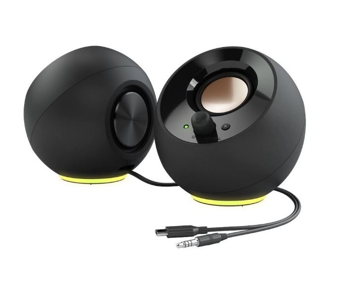 Nyd klar og fyldig lyd fra et overraskende kompakt kabinet. Creative Pebble SE tilbyder effekt op til 4,4 W RMS med støtte fra passive enheder for bedre basdybde. Det ikoniske design med vinklede drivere i 45° retter lyden direkte mod dine ører for maksimal oplevelse ved musik, video og spil.