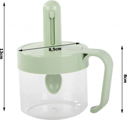 Skeen indbygget i låget gør det muligt præcist at afmåle salt, sukker eller krydderier. Med skyderen indstiller du den ideelle dosis uden unødigt spild.