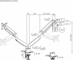 Indstil den ideelle position for dine skærme med tilt −15°/+15°, rotation ±90° og mulighed for at dreje til stående format. Gasfjederen giver jævn højdejustering uden anstrengelse.
