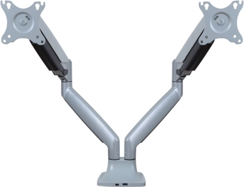 Den stærke gasmekanisme håndterer 1–15 kg pr. arm og holder pålideligt selv store ultrawide- og curved-skærme. Standarderne VESA 75×75 og 100×100 sikrer hurtig og sikker montering.