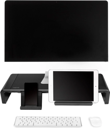 Løft skærmen til en komfortabel højde og skub tastatur og mus ind under standeren. Få mere plads og bedre arbejdsvaner.
