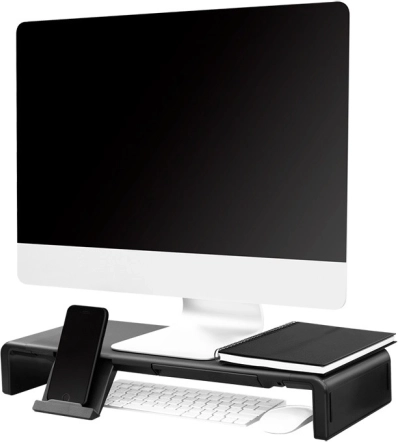 Den ergonomiske skærmstander løfter skærmen til den ideelle højde, hvilket reducerer belastningen af nakke og ryg og forbedrer kropsholdningen. Den justerbare bredde på 420/470/520 mm gør det muligt at tilpasse pladsen præcist til dine behov og udnytte skrivebordspladsen effektivt.