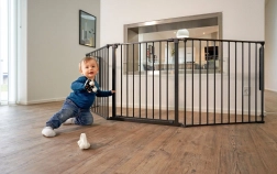 Sikkerhedslågen beskytter børn mod adgang til farlige områder som trapper eller køkkener. Det giver mulighed for fri bevægelighed indenfor en sikker zone uden konstant opsyn.