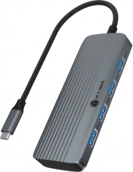 Denne dockingstation er udstyret med fire USB 3.0-porte, som sikrer hurtig dataoverførsel og gør det muligt at tilslutte flere enheder samtidig.