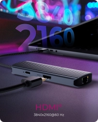 Stationær dockingstation 6-i-1 med HDMI, USB, PD og LAN