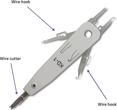 - Presning og klipning af ledere i telefon- og netværksstik samt patchpaneler