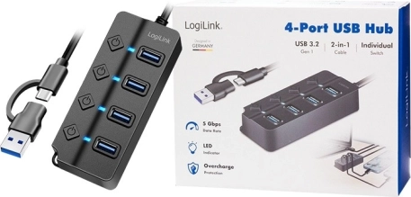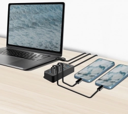 Nyd lynhurtige datahastigheder op til 5 Gbit/s via USB 3.2 Gen 1-porte. Ideel til store filer, video i høj opløsning og krævende apps. Hver port har sin egen afbryder, så du kan aktivere eller deaktivere enkelte enheder uden at påvirke de andre. En LED-indikator viser status for hver port ved første øjekast. En 5 V/3,5 A (17,5 W) strømadapter medfølger og sikrer stabil strøm selv til krævende enheder.