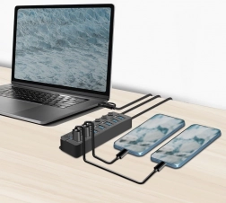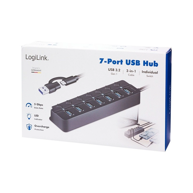 Udvid din computers tilslutningsmuligheder med LogiLink 7-ports USB-hub, der tilbyder avancerede funktioner og fleksibilitet. Hver port kan tændes eller slukkes individuelt, hvilket giver maksimal tilpasning til brugerens behov. Takket være understøttelse af USB 3.2 Gen 1 kan du opnå overførselshastigheder på op til 5 Gbit/s, hvilket muliggør hurtige overførsler af store filer og streaming i HD-kvalitet.