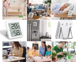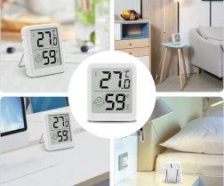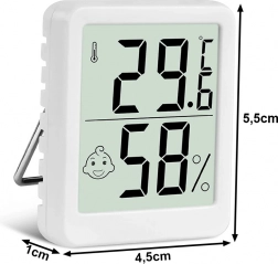 Hold et sundt og behageligt indeklima med dette mini-termometer og hygrometer. Den store, tydelige LCD-skærm viser aktuel temperatur og relativ luftfugtighed, mens en smiley straks indikerer, om forholdene er optimale. Enheden er ideel til soveværelse, børneværelse, kontor, drivhus og til opbevaring af fødevarer.