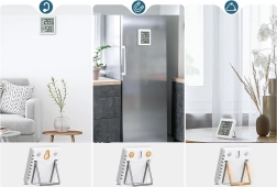 Den praktiske konstruktion gør det muligt at placere enheden på bordet via det integrerede stativ eller fastgøre den på metal takket være magneten. Strømforsyning sker via et almindeligt CR2032-batteri (inkluderet), så enheden er klar til brug med det samme.