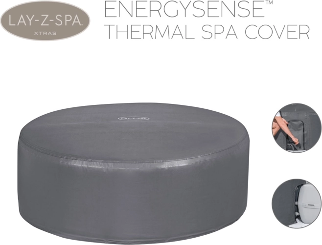Det termiske dæksel EnergySense er designet til at minimere varmetab og beskytte spabadet mod snavs og vejrpåvirkninger. Takket være det kvalitetsmateriale med isolerende lag holder vandet sig varmt længere, så du kan slappe af uden unødig ventetid og hyppig genopvarmning.