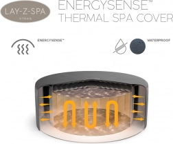 Det premium termolåg Lay‑Z‑Spa EnergySense Plus er designet til maksimal effektivitet og lang levetid. Det trelags DuraPlus-materiale modstår UV‑stråling og vejrpåvirkning, mens den forbedrede dobbelt isoleringslag gør opvarmningen hurtigere og forlænger den tid, hvor spabadet holder en behagelig temperatur.