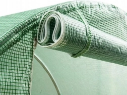 Selvlåsende døre og 8 myggenetsudstyrede vinduer giver fremragende ventilation og mulighed for at regulere temperaturen inde i tunnelen. De tillader nem håndtering, hvilket gør drivhuset til en praktisk hjælper til daglig brug. Den stærke folie med UV4 filter beskytter planterne mod skadelig UV-stråling, og takket være polypropylen net, sikrer materialet styrke og beskyttelse mod rifter.