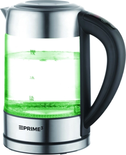 PRIME3 elkedel med kapacitet på 1,7 l og effekt på 2200 W er uundværlig i både hjemmet og på kontoret. Den har LED-belysning i 5 farver, som ikke blot ser flot ud, men også viser den aktuelle vandtemperatur. Kedlen er udstyret med sikkerhedsfunktioner: automatisk slukning og beskyttelse mod overophedning.