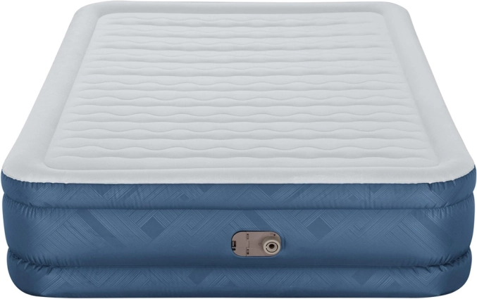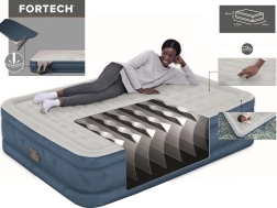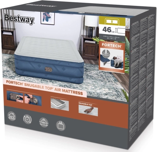 BESTWAYs oppustelige seng er fremstillet af det holdbare Tough Guard Fortech-materiale, som kombinerer PVC’s elasticitet med stoffets styrke. Den bløde flokkerede overflade er behagelig at røre ved, skrider ikke og øger komforten. Den stabile Wave Beam-konstruktion fordeler vægten jævnt og modvirker at man synker ned.