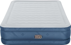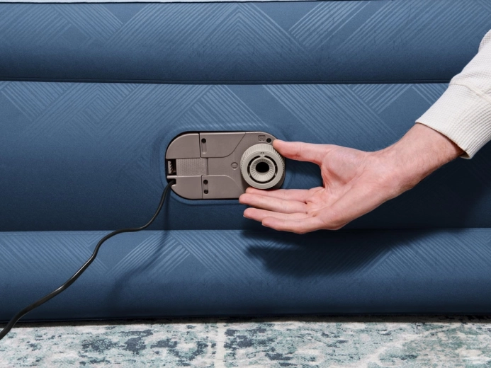 Den integrerede elektriske pumpe på 220–240 V puster sengen op på cirka 3 minutter. Der er også mulighed for manuel/fodpumpe, når der ikke er adgang til strøm.