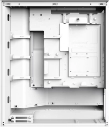 Kabler tæmmes med brede kanaler, integrerede kroge og medfølgende stropper. Toppanelet byder på praktisk tilslutning med USB‑C og 2× USB‑A. For maksimal luftgennemstrømning kan der monteres op til 10 blæsere – 3 i toppen, 3 foran, 3 i bunden og 1 bagtil.