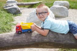Børn kan nemt laste og tippe lasten – understøtter kreativ og meningsfuld leg.