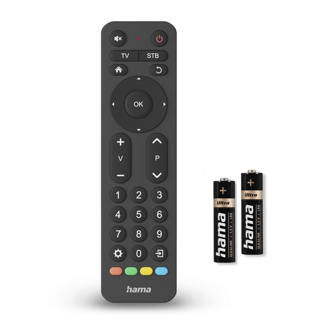 - Styr op til to enheder: Én fjernbetjening til tv og set-top-boks.