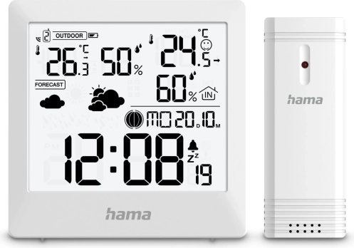 Hama Palawan vejrstation giver pålidelig overvågning af indeklimaet. Den trådløse sensor sikrer præcis aflæsning af indendørs og udendørs temperatur og luftfugtighed med mulighed for at skifte enheder °C/°F. Det overskuelige LCD-panel suppleres af en fire-ikoners vejrudsigt for hurtig orientering.
