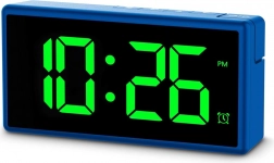 Store tal, mulighed for at vælge farve (hvid, blå, grøn, rød) samt overgangseffekt og 4 lysstyrkeniveauer for perfekt læsbarhed både dag og nat.