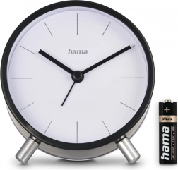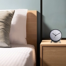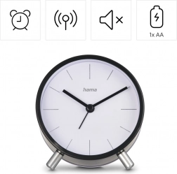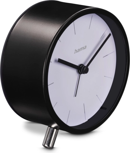 Det elegante vækkeur Flores i sort kombinerer tidløst udseende med pålidelig funktionalitet. Takket være den rene hvide urskive, kontrasterende visere og markante indeks er tiden let at aflæse selv på større afstand. Det minimalistiske kabinet på stabile metalben fungerer som et stilfuldt element i soveværelse, kontor eller stue.