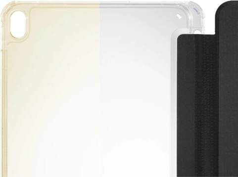Takket være de gennemsigtige rygpaneler bevares enhedens originale udseende. Coveret tilbyder stativfunktion til behagelig skrivning og videovisning, automatisk tænd/sluk ved åbning og lukning samt en praktisk holder til stylus. Skridsikker finish og rillede sider giver et sikkert greb uden uønsket gulning af materialet.