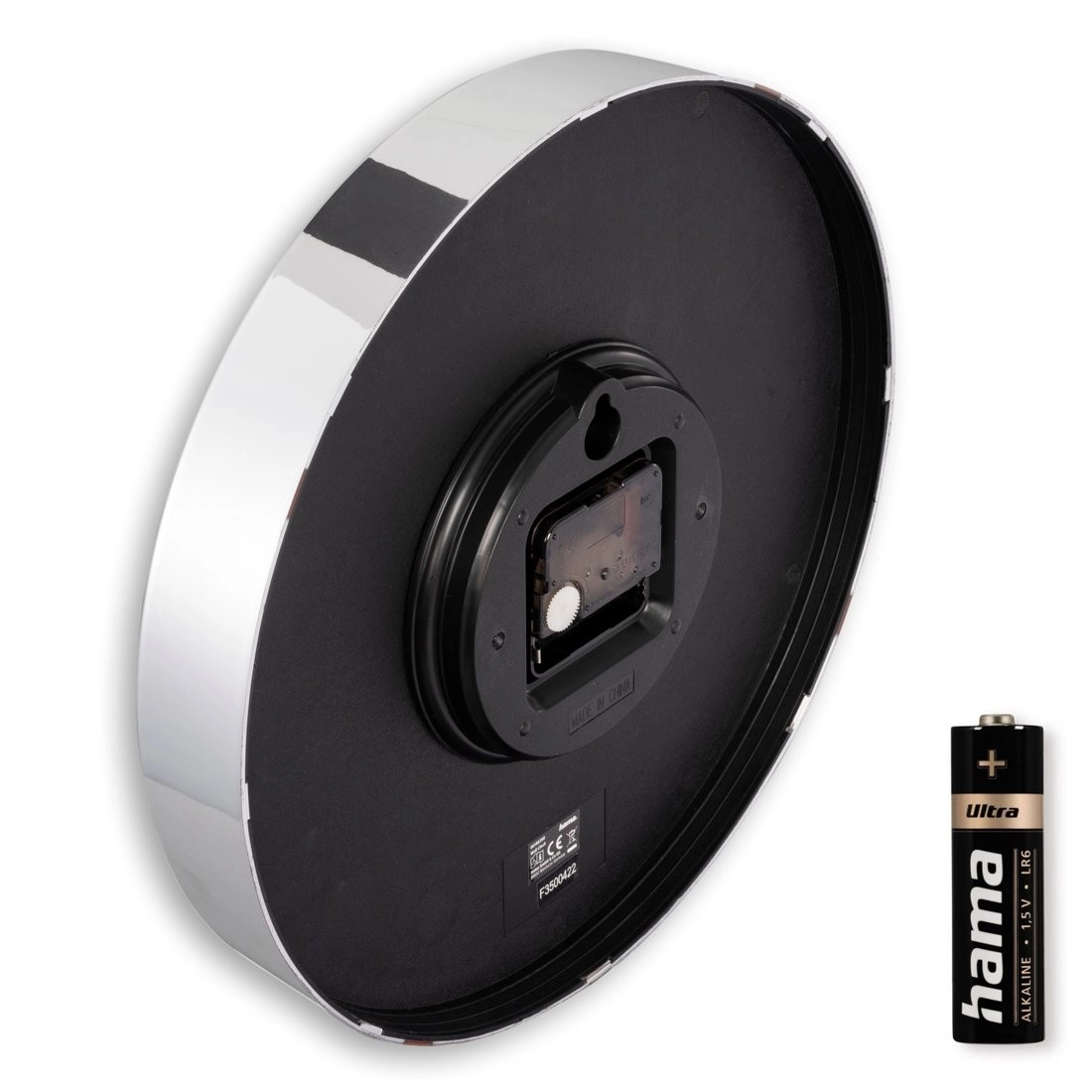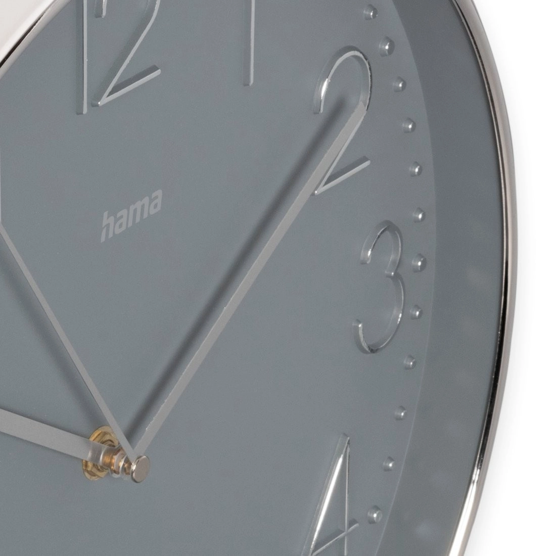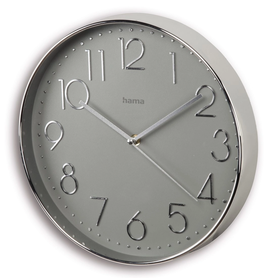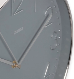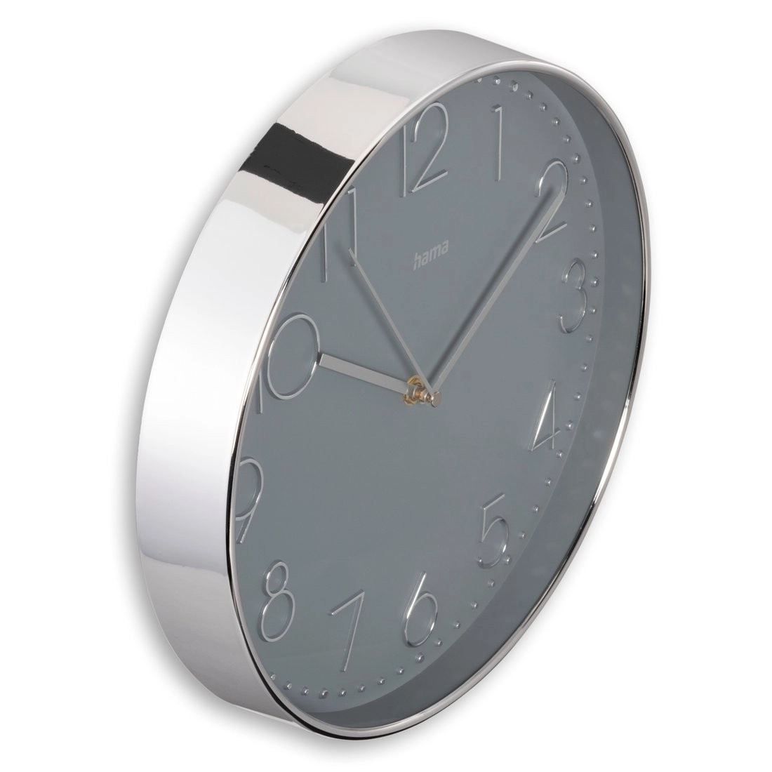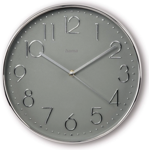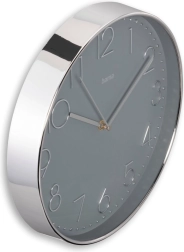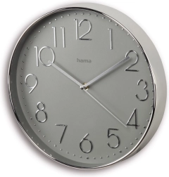 Grå urskive med en diameter på 30 cm og sølvramme giver et tidløst udseende. Den store analoge display med markante visere gør det nemt at læse tiden på enhver afstand.