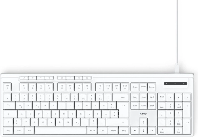 Det ledningsførte tastatur Hama CK-200 har stille taster, der muliggør roligt arbejde uden at forstyrre andre. Det er ideelt til kontormiljøer. De justerbare ben giver mulighed for at tilpasse hældningsvinklen for en komfortabel håndstilling ved skrivning.