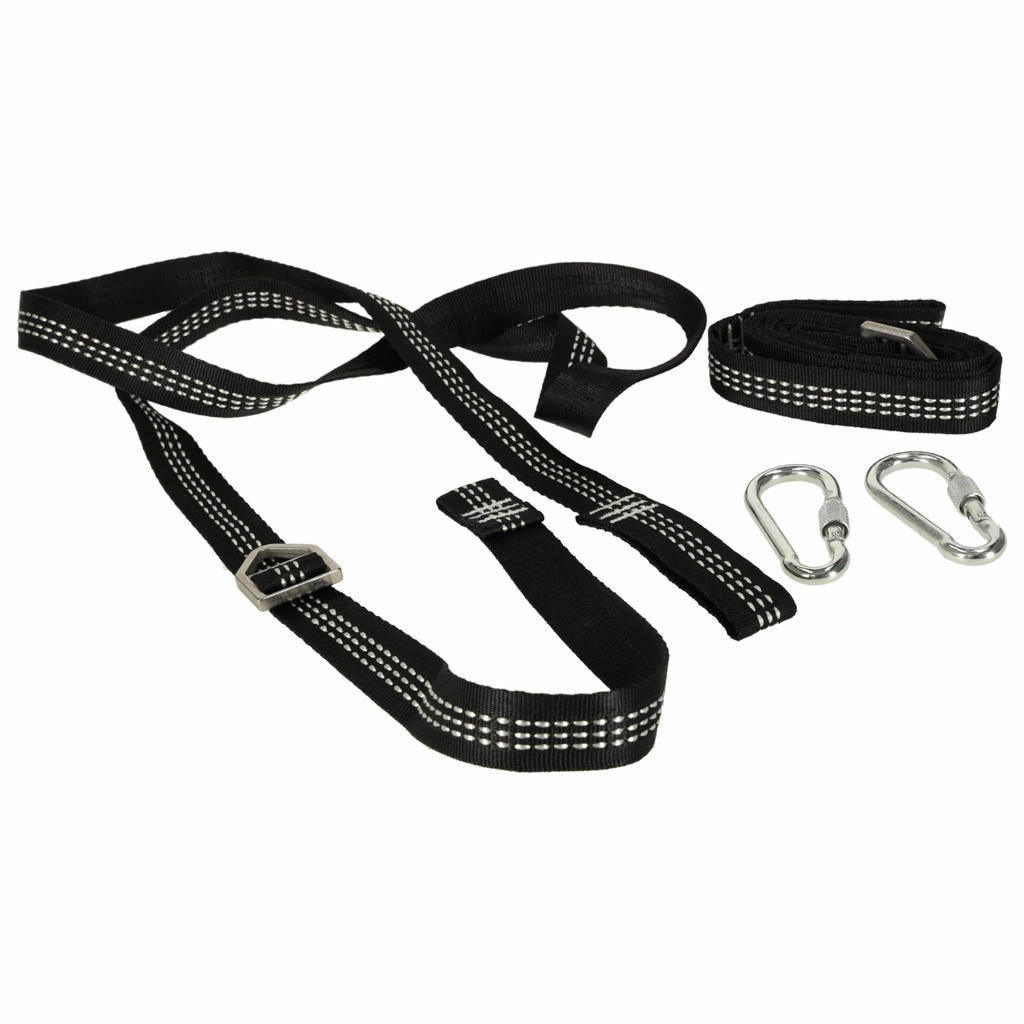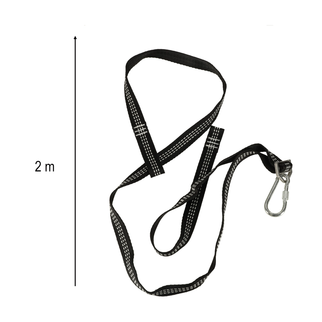 Det ideelle monteringssæt for alle, der elsker at gynge, hvad enten det er til brug i haven, på terrassen eller indendørs. Sættet indeholder to meget holdbare remme på 2 meters længde og to karabinhager med en maksimal bæreevne på 300 kg. Dette sikrer stabilitet og sikkerhed selv ved intensiv brug.