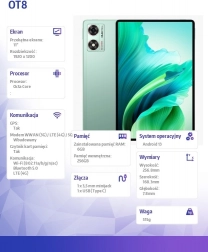 Udstyret med en octa-core Unisoc T606-processor og 6 GB RAM med mulighed for udvidelse op til 30 GB håndterer enheden også krævende opgaver. Med 256 GB intern hukommelse, som kan udvides til 1 TB, får du masser af plads til alle dine filer. Det højkapacitets 8800 mAh-batteri sikrer strøm til to hele dages almindelig brug.
