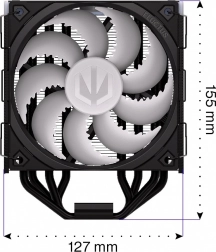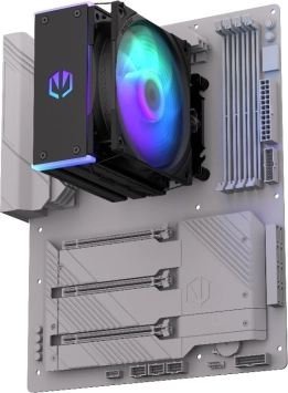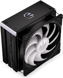 Den inkluderer den præmium Fluctus 120 PWM ARGB-blæser på FDB-leje med særligt formede vinger og bølget forkant for at reducere uønsket støj. Fan‑stop-funktionen muliggør semi‑passiv drift ved lav belastning. Det elegante helmetal sorte design og adresserbar ARGB-belysning i både blæser og topcover kan nemt matches med enhver opsætning – enten via bundkortet eller med den medfølgende Nano‑Reset ARGB-controller.