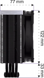 Kobbervarmerør med direkte kontakt til CPU og tæt, asymmetrisk ribbestruktur leder effektivt varmen væk og forbedrer kompatibiliteten med hukommelsesmoduler.