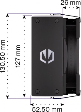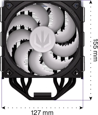 ENDORFY Fera 5 Black ARGB er en kompakt og effektiv luftkøler, udviklet i samarbejde med Synergy Cooling for det bedste forhold mellem ydelse og støj. Tætte ribber, asymmetrisk køleprofil og fire kobber heatpipes med direkte kontakt til IHS på processoren leder effektivt varmen væk selv under høj belastning, mens en optimeret ensrettet luftstrøm øger køleeffektiviteten.