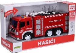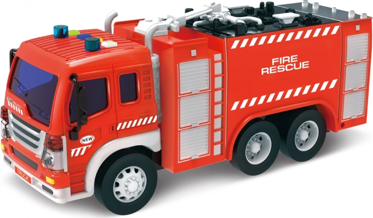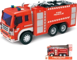 Oplev realistisk leg med denne brandbil, der er udstyret med sprøjte og effekter, der giver en autentisk oplevelse. Bilen er 28 cm lang og drevet af inerti, hvilket gør bevægelse lettere uden konstant at skulle trykke på knapper.