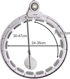 Takket være justerbar omkreds på 75–109 cm tilpasser du nemt størrelsen til din krop – ved at fjerne segmenter. Justerbar vægt (20–37 cm) lader dig vælge den præcise intensitet og dermed effektivt forme talje, mave, hofter og ryg. Hurtigkoblingssystemet sikrer samling på 50 sekunder uden værktøj, så ringen nemt kan pakkes og tages med overalt.